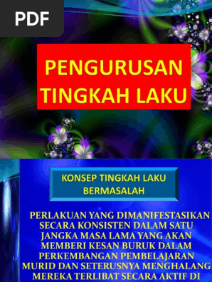 Masalah tingkah laku kanak kanak berkait rapat dengan perkembangan sosial mereka. Bagi strategi pengurusan tingkah laku mengikut model pula, para pengkaji tiga teori utama iaitu model psikodinamik, model biofizikal dan model persekitaran. Objektif kajian secara amnya kajian yang dijalankan, berkisarkan kepada tiga pembolehubah, iaitu, tingkah laku kepimpinan pengetua, tekanan kerja guru dan keberkesanan organisasi. Academia edu is a platform for academics to share research papers. Jelaslah untuk mengurus bilik darjah dengan baik, guru pelatih perlu menetapkan peraturan di bilik darjah yang telah dipersetujui bersama oleh pelajar sebagai satu kontrak yang dapat mengawal tingkah laku mereka.